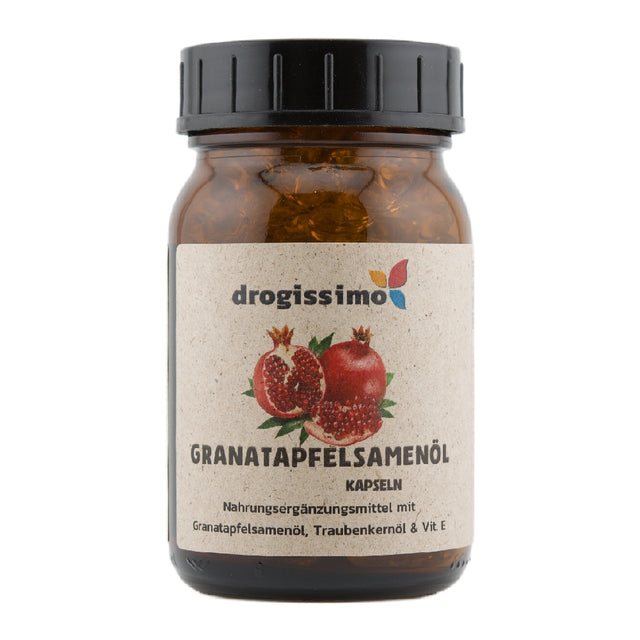 Unsere Granatapfelsamen Kapseln stellen ein Nahrungsergänzungsmittel mit einer optimalen Kombination von Omega-Fettsäuren aus Granatapfelsamenöl und Traubenkernöl sowie Vitamin E natürlichen Ursprungs dar.